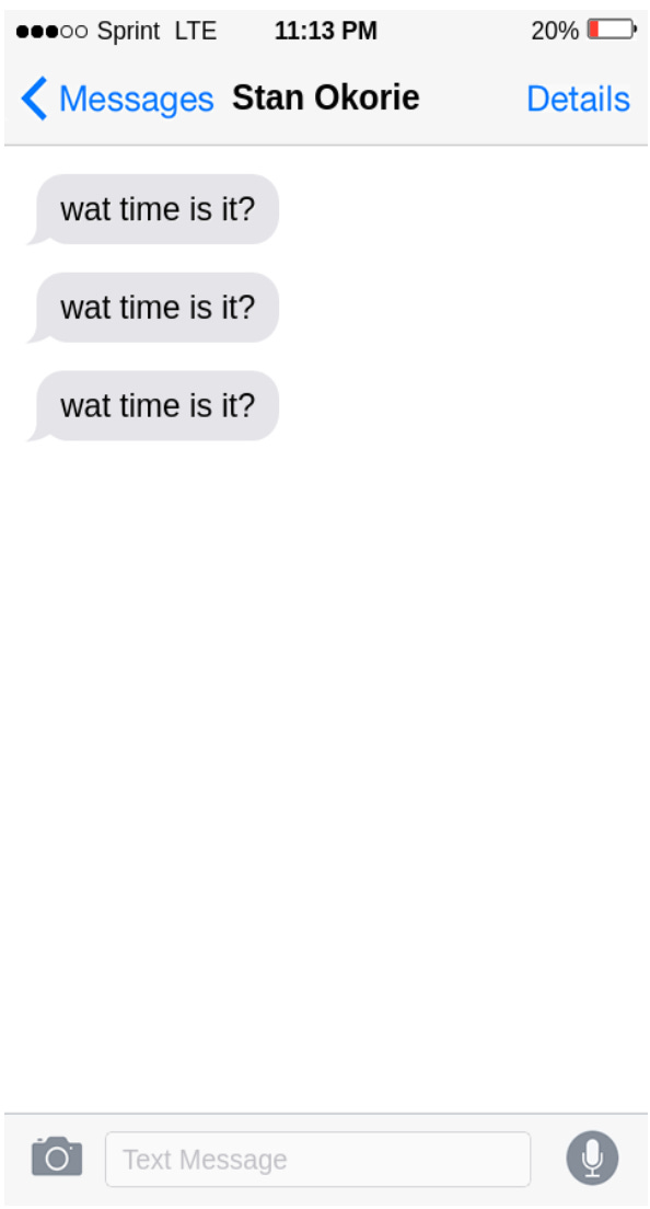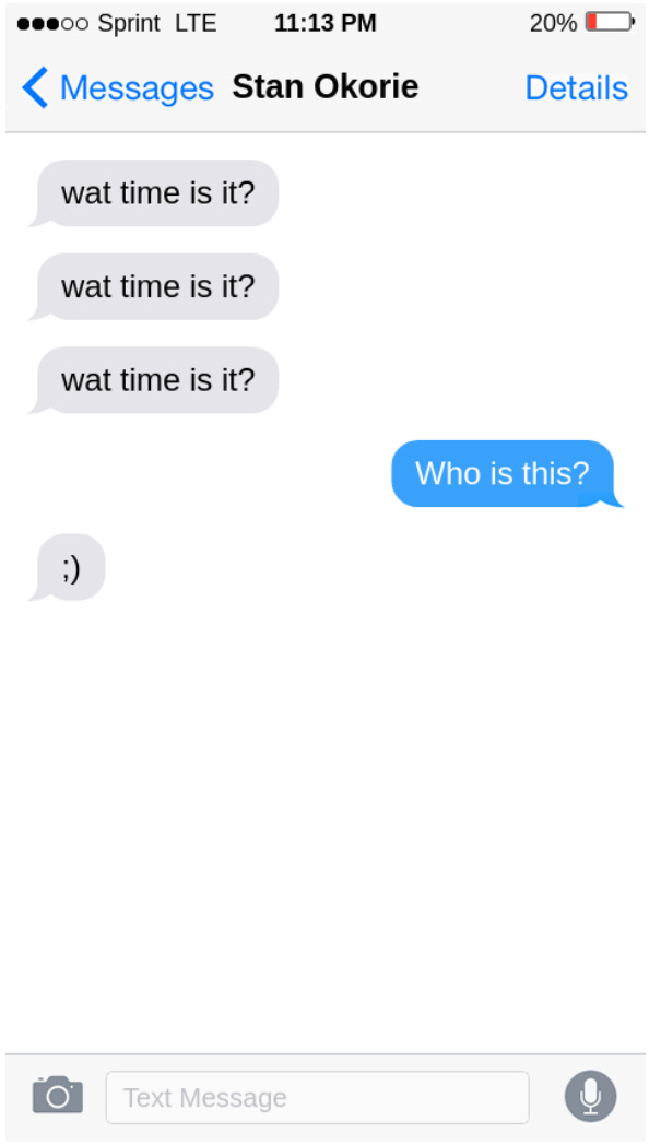 In the morning, Mitch discovered a new text from his friend Stan Okorie.